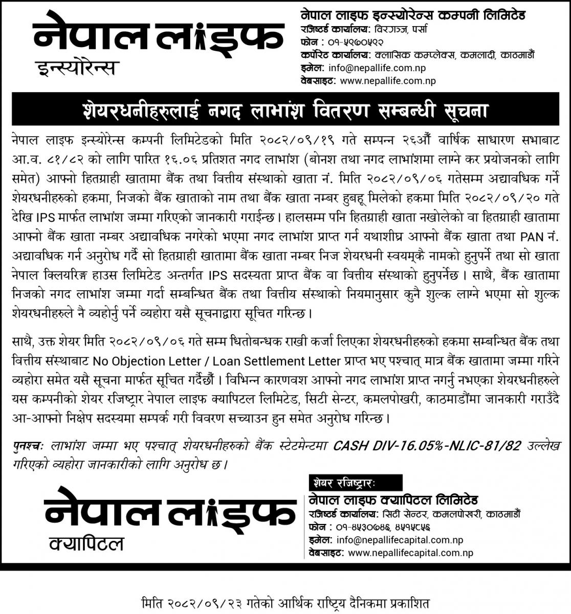 Customer Service: 01-5970971 (Sun-Sat | 9:00 AM - 6:00 PM ) / 9801170971 Email: customer.service@nepallife.com.np